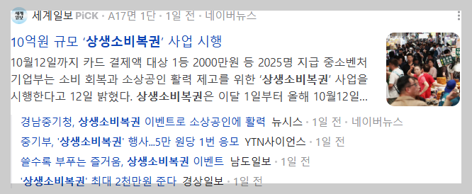 - 1등 당첨은 비수도권 소비 촉진 목적, 비수도권 전통시장·소상공인 매장에서 카드 결제한 소비자 중 선정