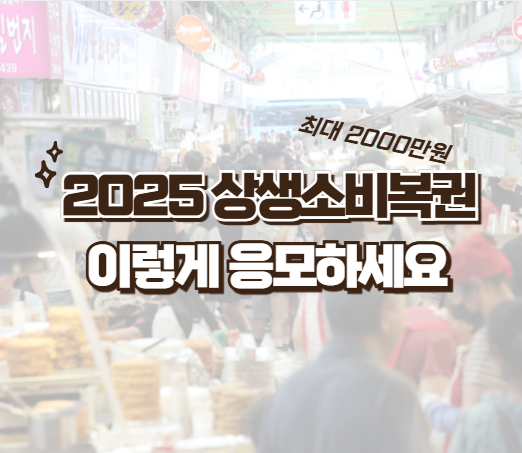 2025 상생소비복권은 전통시장과 소상공인 매장 활성화와 소비 촉진을 위한 획기적인 정부 지원 사업입니다. 소비할 때마다 응모 기회가 주어지고, 최대 2,000만 원 상금의 행운까지 잡을 수 있는 절호의 찬스입니다. 카드 결제만으로 쉽고 간편하게 참여 가능한 만큼, 9월 15일부터 열린 응모 기간을 놓치지 말고 꼭 신청하세요.